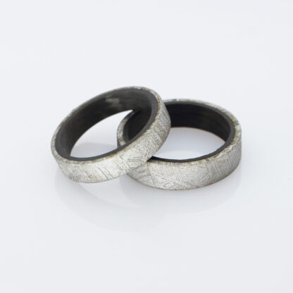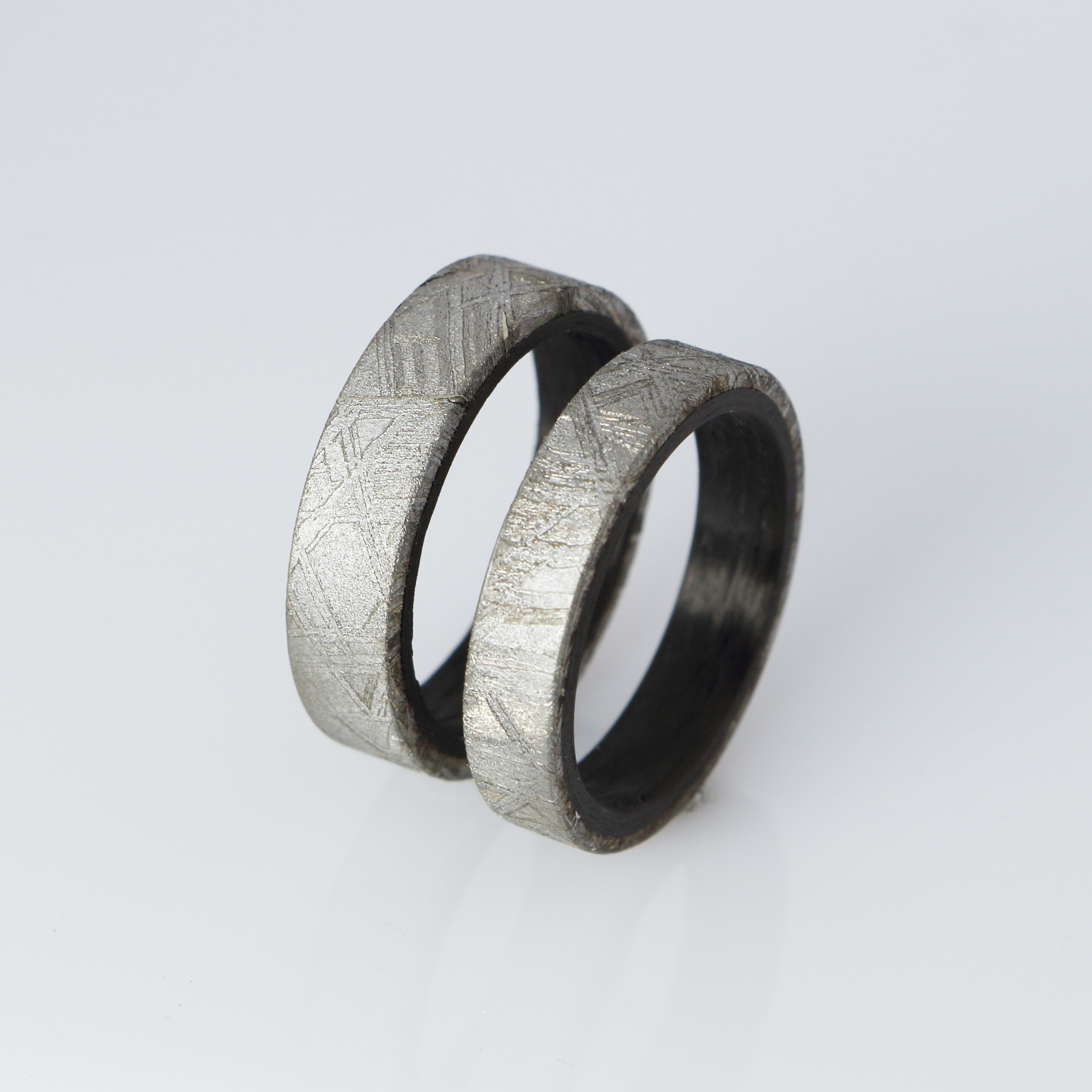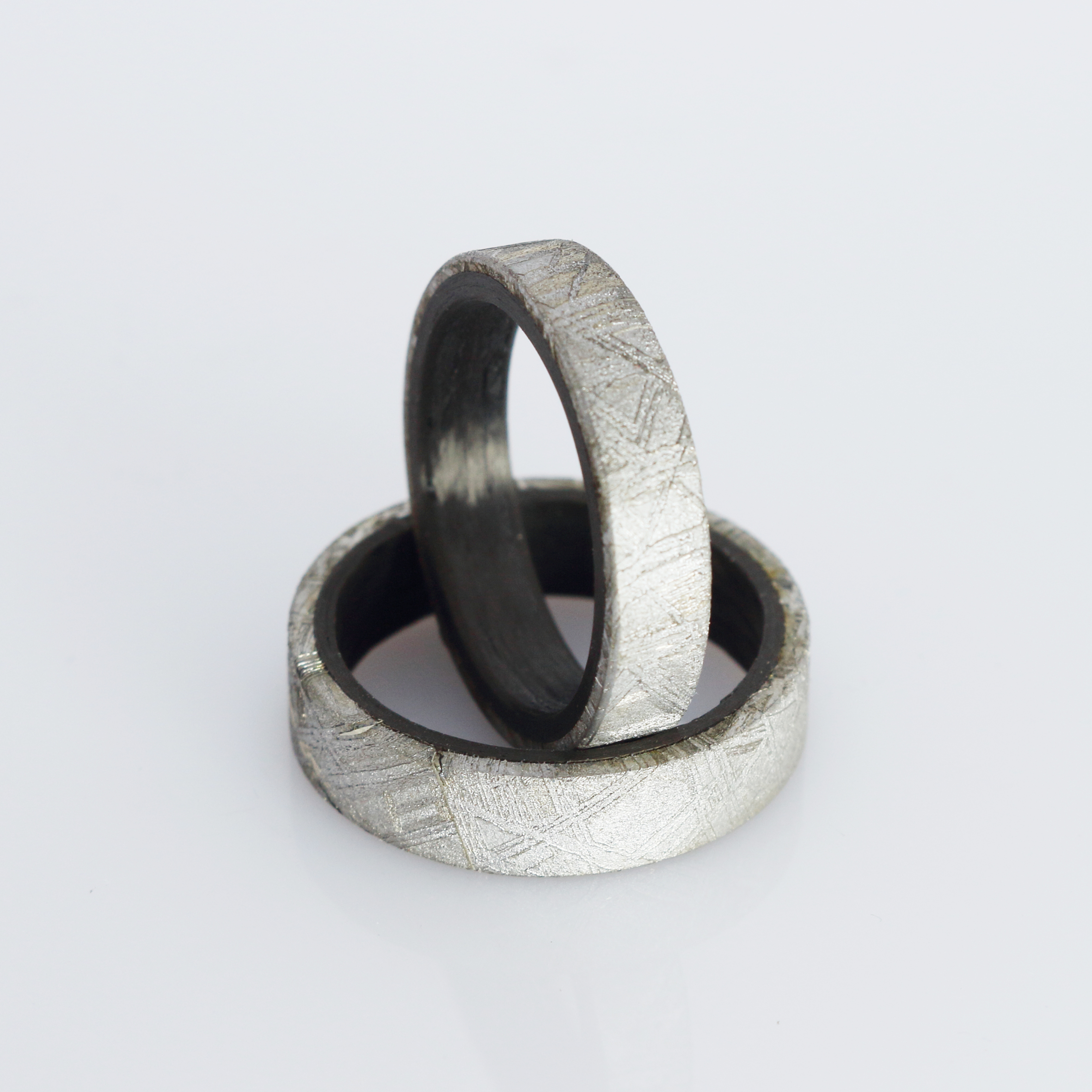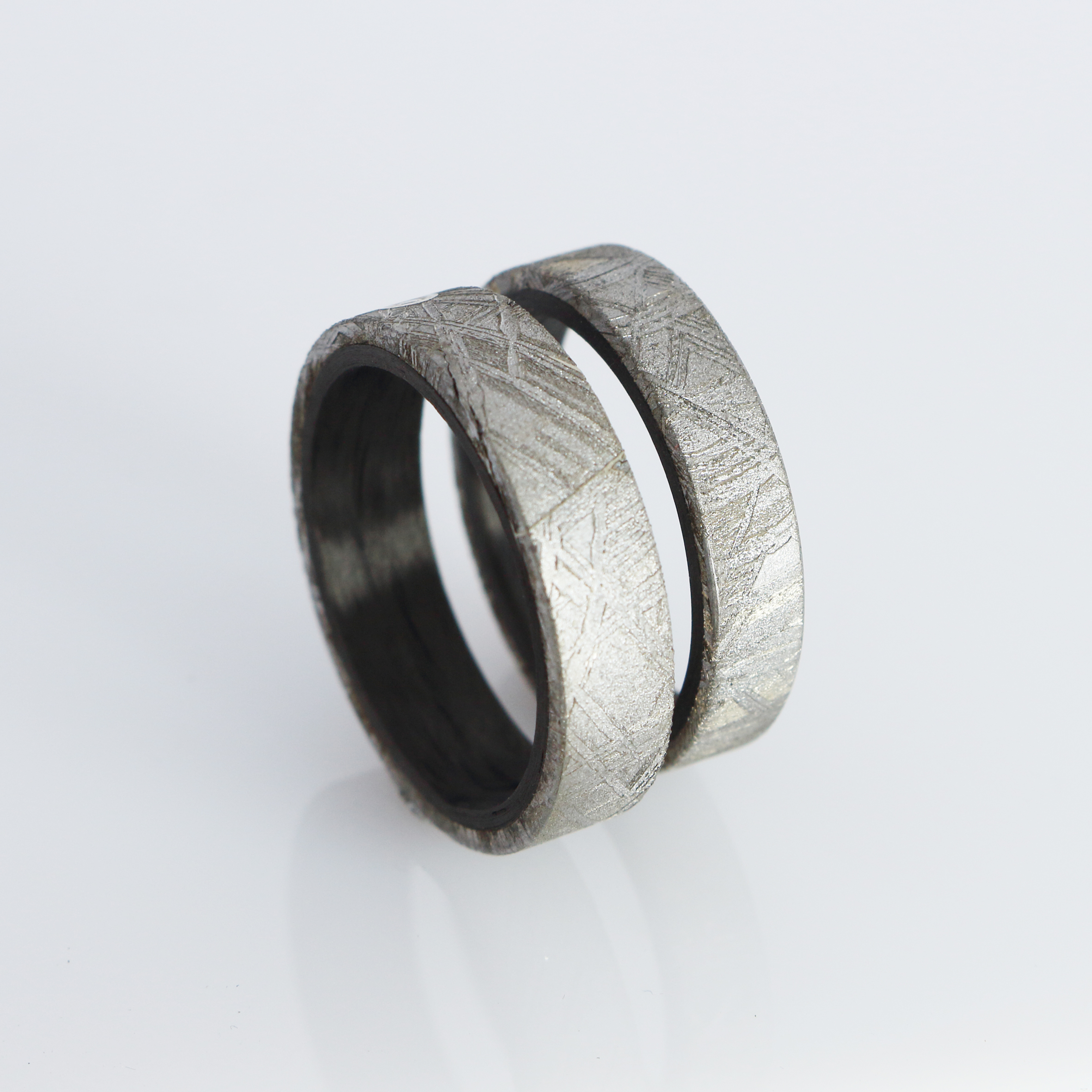 Bei dem Angenot handelt es sich um 2 Ringe, die aus Meteorit und Carbon in sorgfältigster Handarbeit von mir persönlich gefertigt werde. Der Gibeon oder Muonionalusta -Meteorit ist ein Eisenmeteorit der speziell geätz wird um diese wundeschöne und einzigartige Struktur (Widmannstätten-Struktur) zu erlangen.