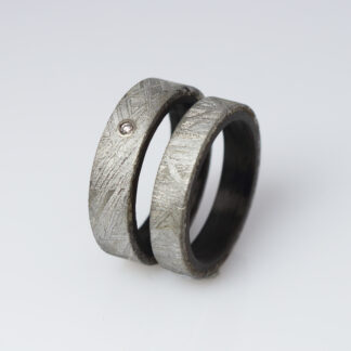 Carbonringe mit Meteoriteneinlage und Diamant (CP05)